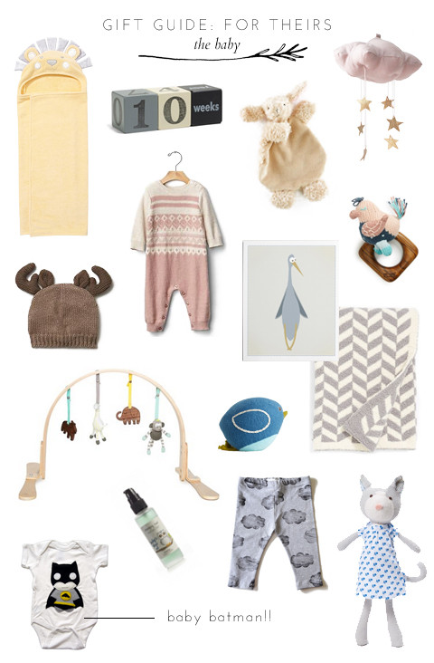 FOR BABY: Cat Stuffed Toy: Brika | Soothing Baby Oil: Brika | Cloud Leggings: Brika | Batman Onesie: Brika | Pink Cloud Mobile: Brika | Blue Bird Rattle: Brika | Bird Art Print: Brika | Moose Beanie: Gap | Fair Isle Onesie: Gap | Flat Bunny: Land of Nod | Teething Ring: Nordstrom | Play Gym: Nordstrom | Super Soft Chevron Blanket: Nordstrom | Age Blocks: Nordstrom | Lion Towel: Pottery Barn Kids