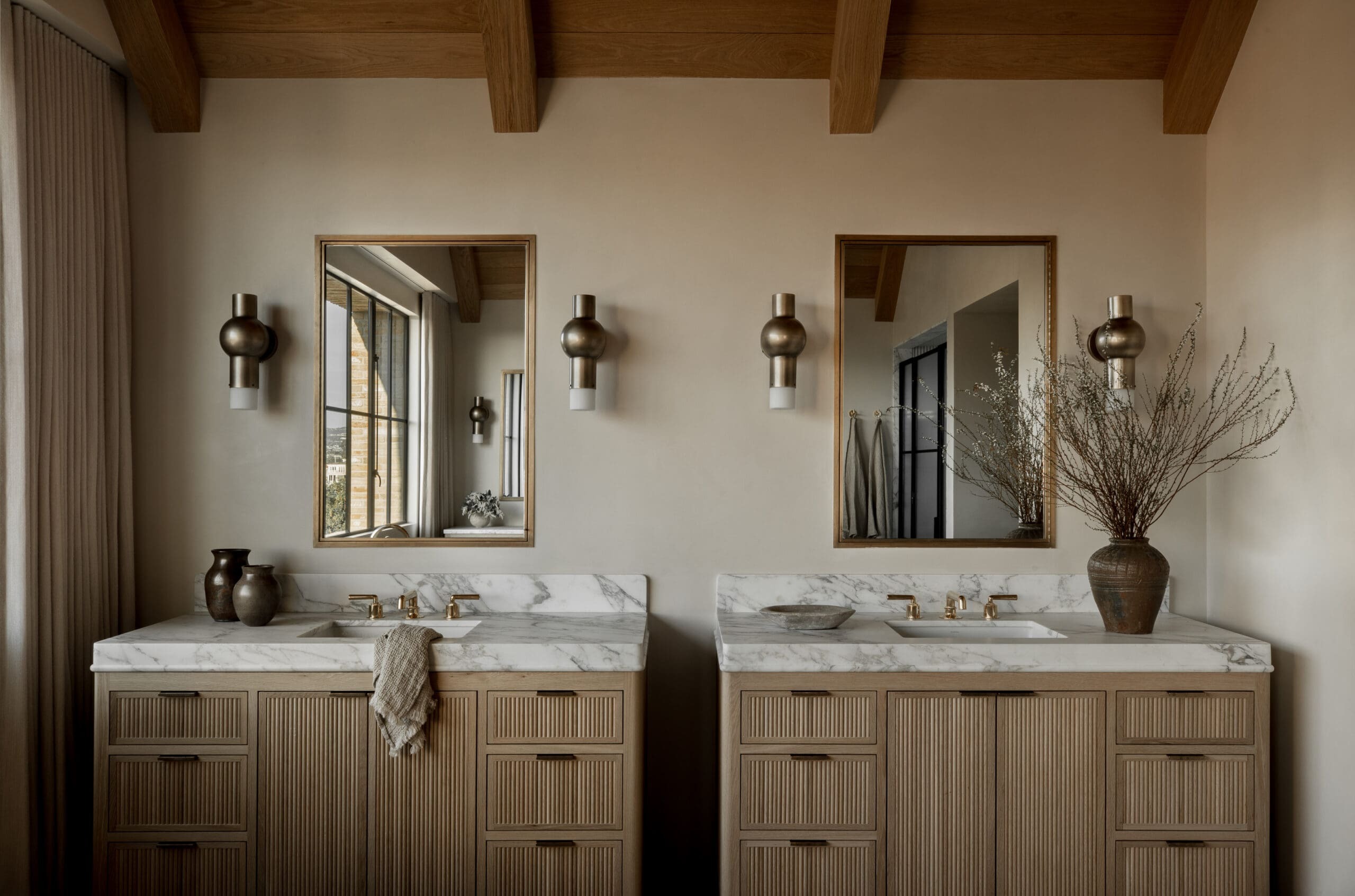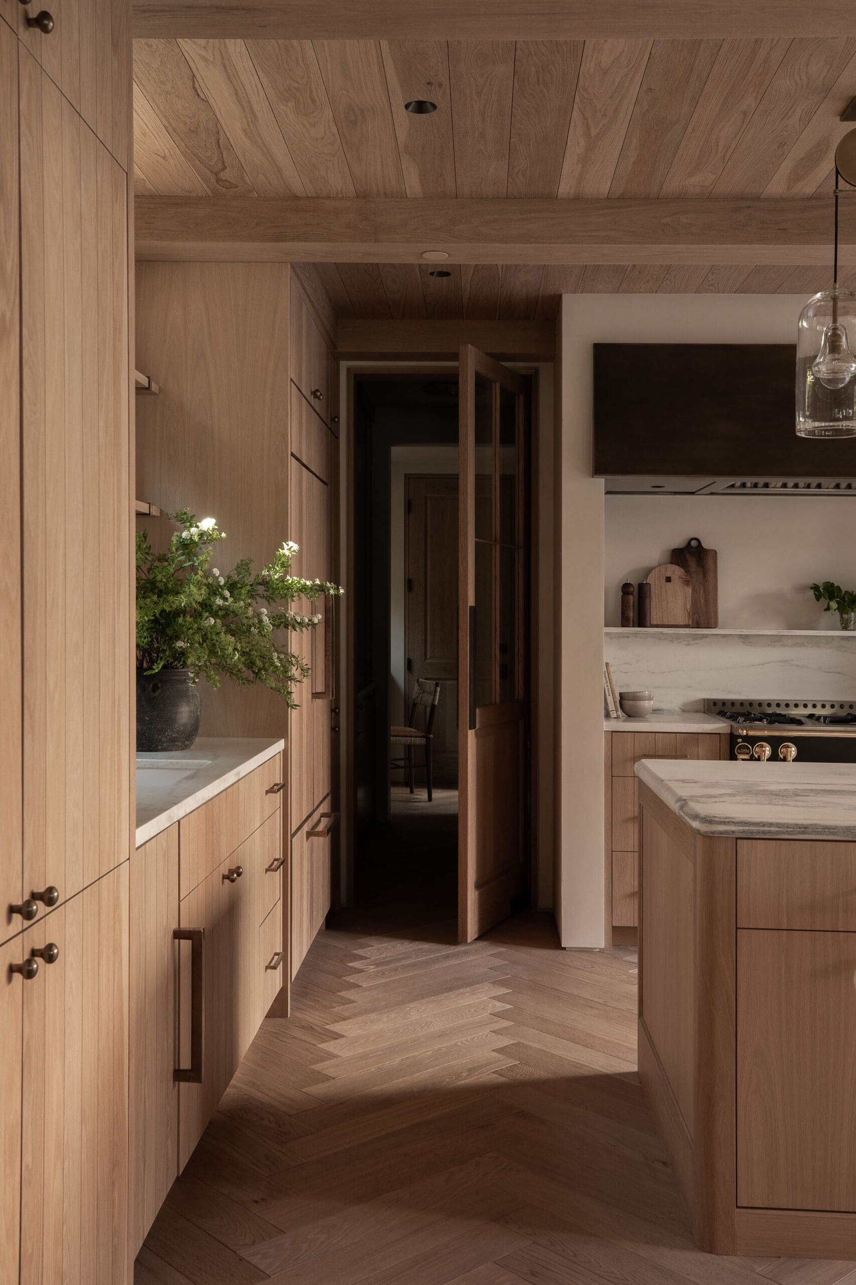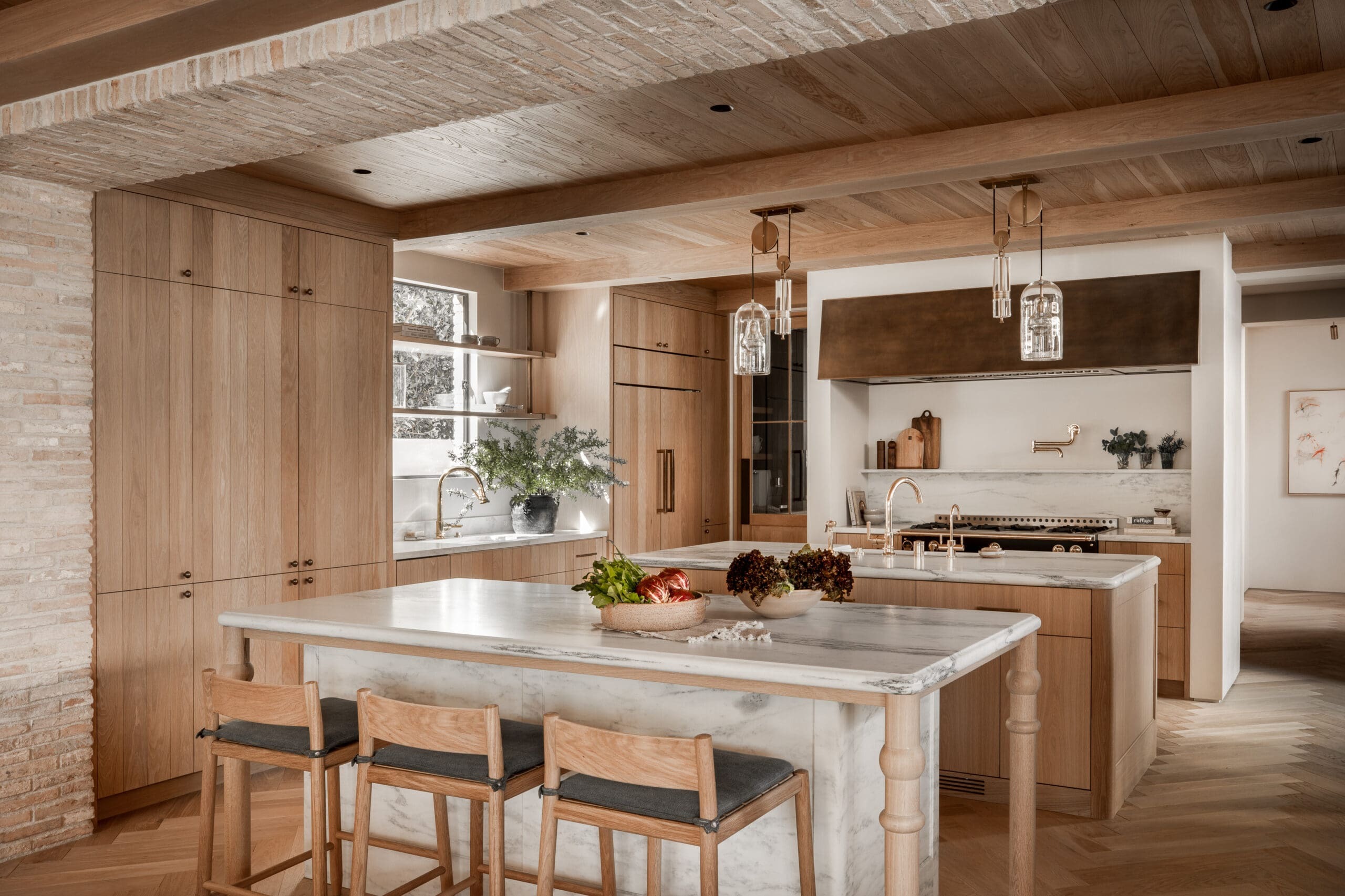 The kitchen alone is worth writing home about, with its wood cabinets, vintage runner, and a range that looks like it’s lived a life. The entire home has that magic balance of high-end and lived-in that California coastal interior design does best. Think: beach house, but grown up, and dressed in earthy neutrals with quiet confidence.